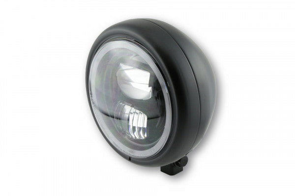 HIGHSIDER 5 3/4 inch LED headlamp PECOS TYPE 7 with parking light ring, black matt or chrome-plated, E-approved