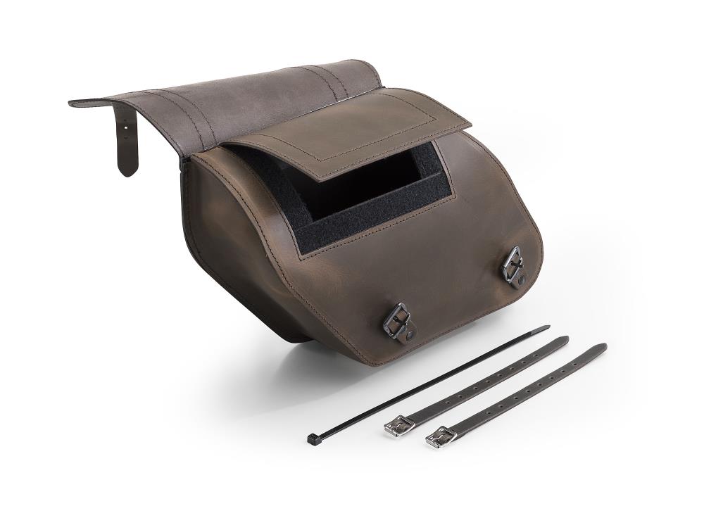 "Saddlebag "left" Ledrie - leather brown with buckles - 11 litres